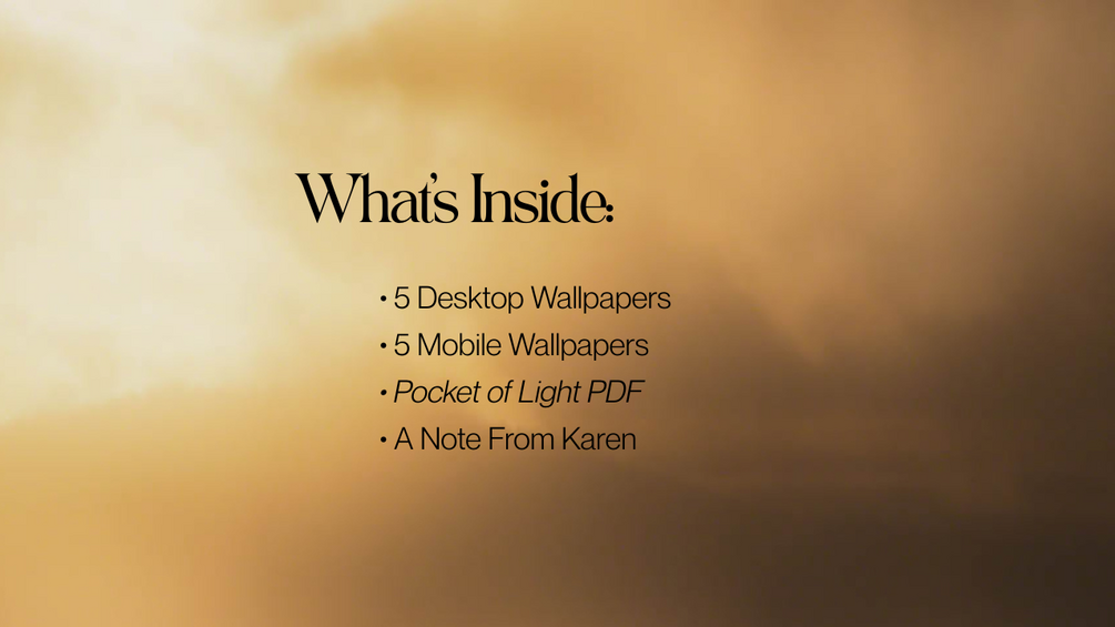 The Pocket of Light PDF, 5 Desktop Wallpapers, 5 Mobile Wallpapers , A personal note from Karen.